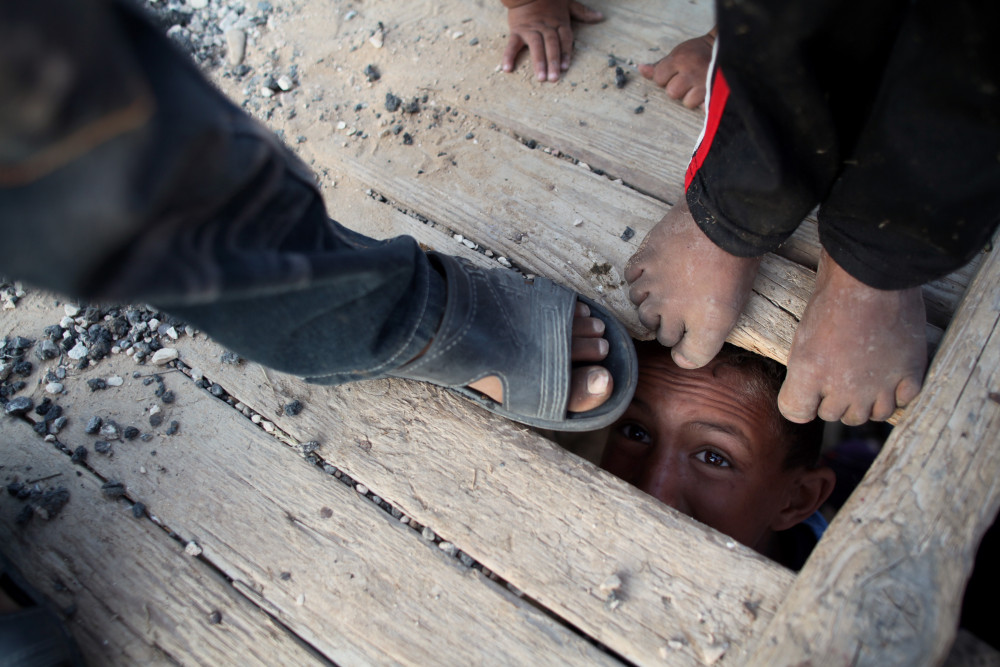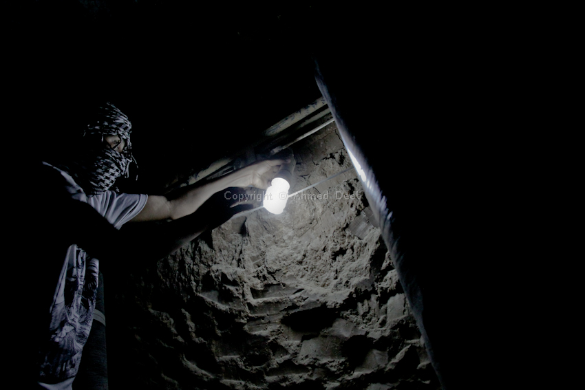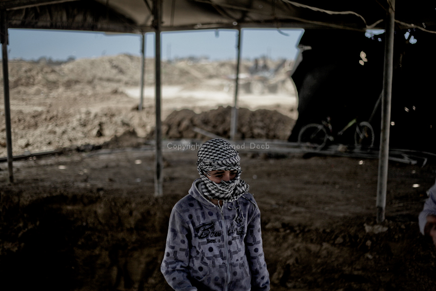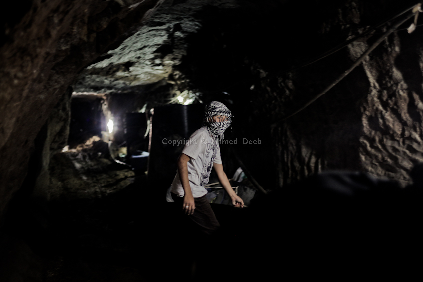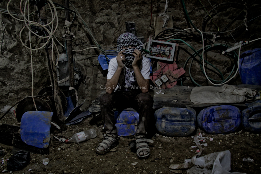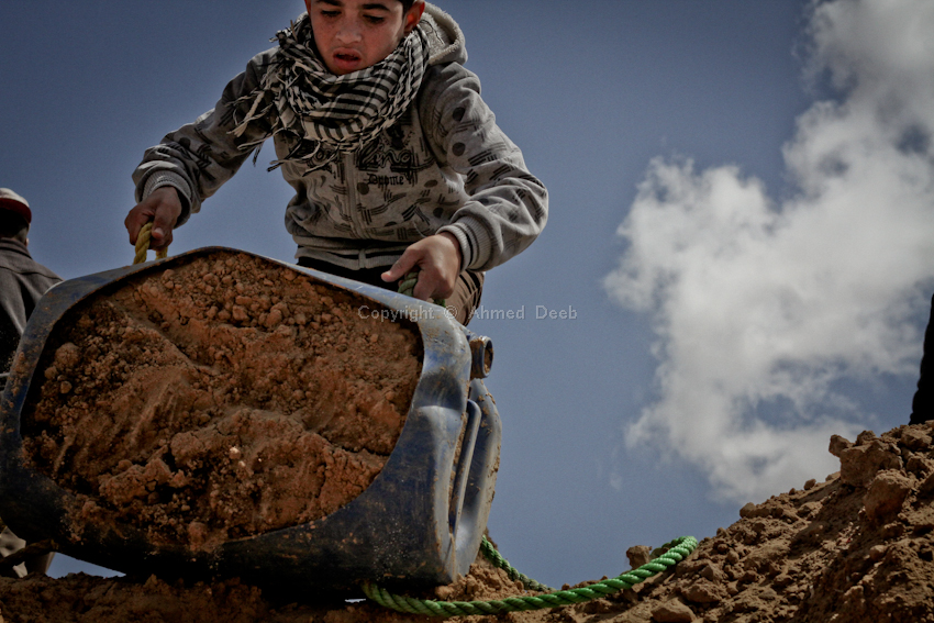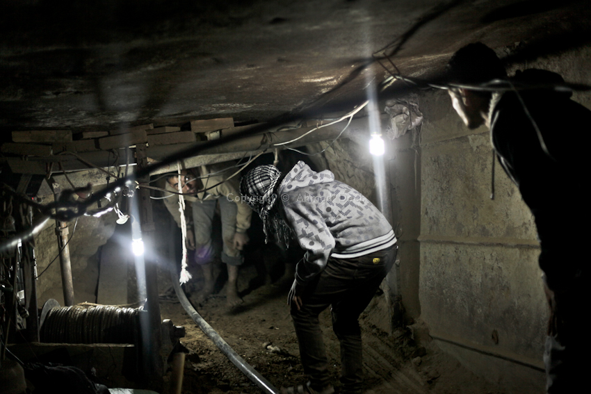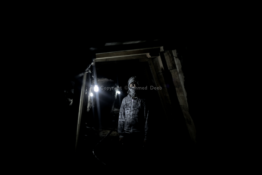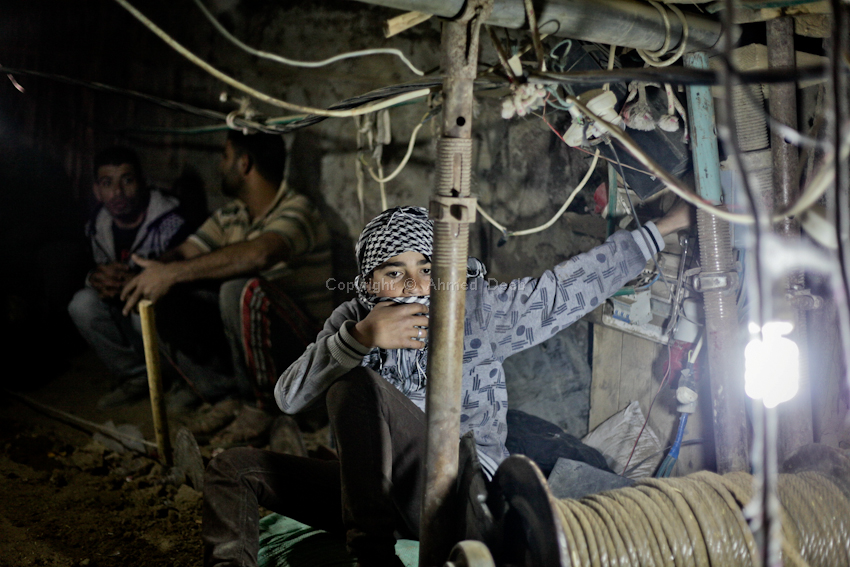 Mohamed Alhwani a 12-year-old, Palestinian refugee lives in Rafah city near the Egyptian border in the southern Gaza Strip, he spend 6 hours a day at work inside the tunnel, and returns late at night while in the morning he goes to school.