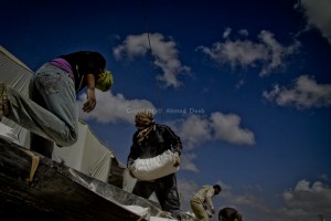Conditions are particularly rough for the many children who live in the camp, and have been forced to sleep under wet blankets, on damp mattresses laid down on the ground, without any help from the government except some volunteers bring food, blankets and other needs.
