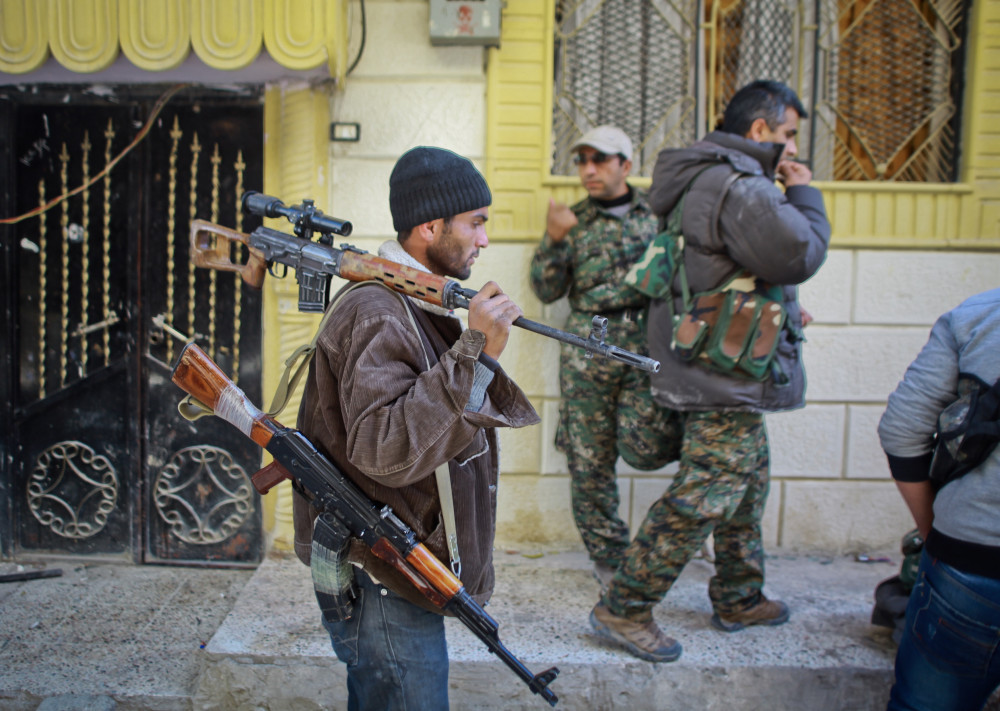 Fighters from the Syrian Kurdish People’s Protection Units (YPG) and Kurdish Peshmerga are fighting against Islamic State (IS) group in the Syrian besieged border town of Ain al-Arab (Kobane)