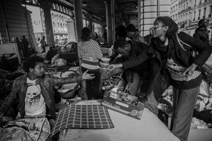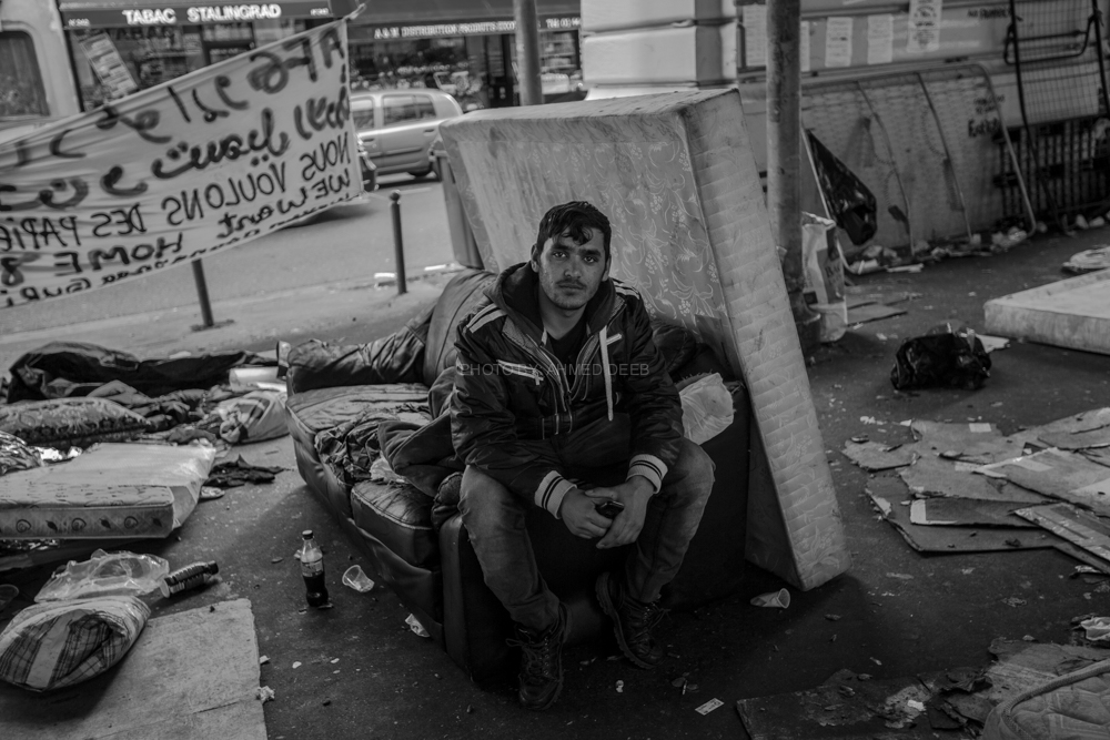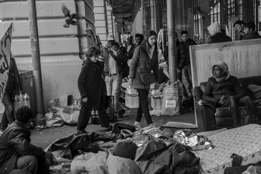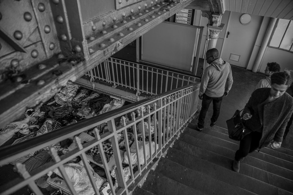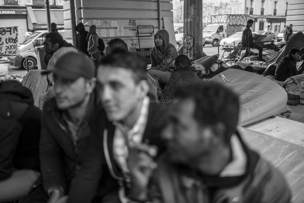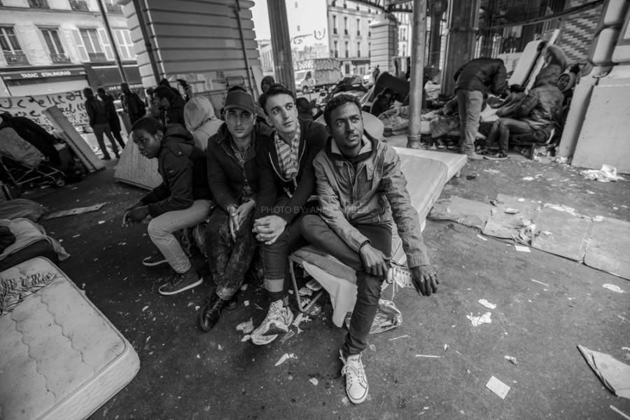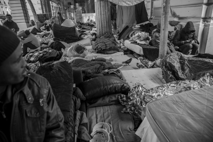 26 March, 2016. France, Paris. About a thousand of refugees and migrants from Afghanistan, Sudan, Somalia and Eritrea had found shelter under the Paris elevated railroad near the Stalingrad subway station in the north of the city.