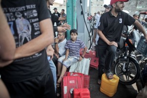 a Palestinian boy waits to fill a container of power generator with fuel from a petrol station in Gaza city, The turmoil in neighboring Egypt has rippled into the Gaza Strip, stranding thousands of people on both sides of the border and causing a painful fuel shortage.